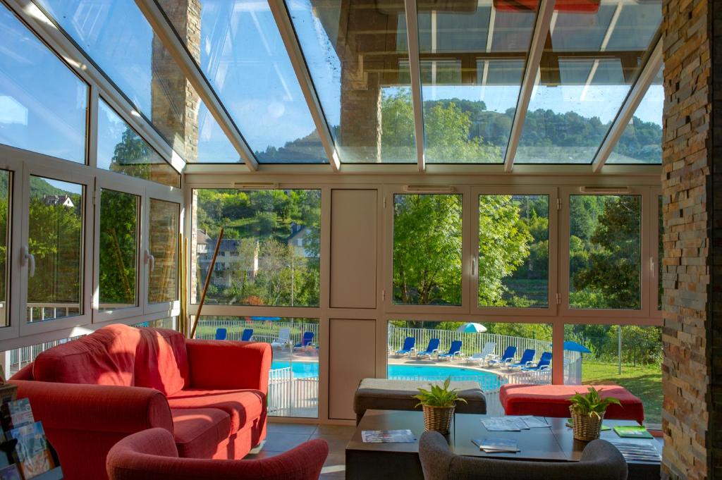 Elle propose une piscine couverte et une piscine extérieure chauffées, d'un sauna et hammam.