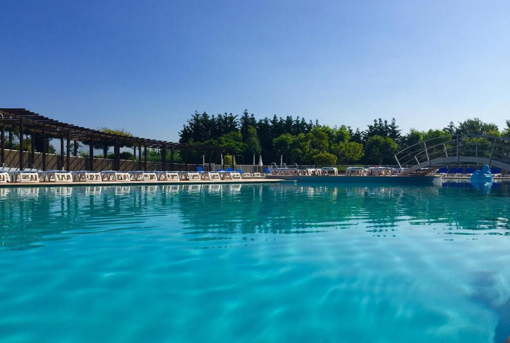 Elle dispose d'une piscine extérieure chauffée de 575m2, d'un terrain de tennis, d'un terrain multisport, de plusieurs terrains de pétanque, d'une aire de jeux pour enfants, ainsi que d'un restaurant et d'un snack en saison.